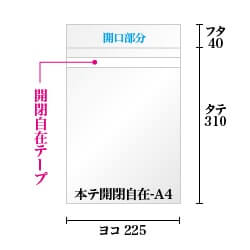 OPP袋テープ付 A4用 本体側開閉自在テープ 標準#30 [本テ開閉自在-A4]