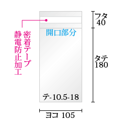 OPP袋テープ付 105x180+40 標準#30 [テ-10.5-18]